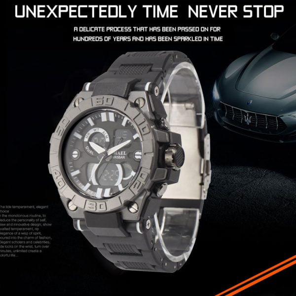 Jam tangan Anti Air (Waterproof) Smael hadir dengan interface penunjuk waktu digital yang unik dan stylish, selain itu jam tangan ini memiliki beragam fitur lainnya, seperti shock resistant, cold light, calendar, stopwatch, alarm, dll. Desain dari jam tangan ini tidak kalah menarik dari brand ternama seperti Rolex, Omega, Bulova, Casio G-Shock Edifice, Hublot, Patek Philippe, IWC, Tag Heuer, Oakley, Tissot, Daniel Wellington, Victorinox Swiss Army, Fossil, Seiko Emperor, Police, Alexandre Cristie, Citizen.