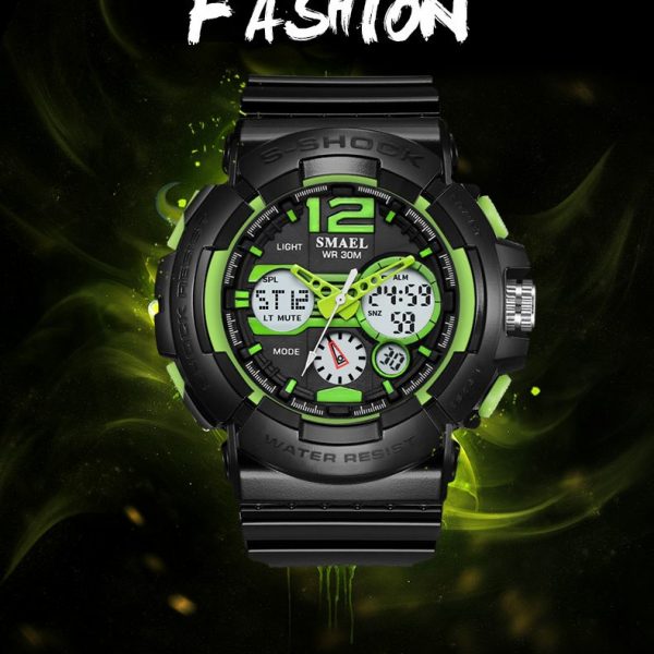 Jam tangan Anti Air (Waterproof) Smael hadir dengan interface penunjuk waktu digital yang unik dan stylish, selain itu jam tangan ini memiliki beragam fitur lainnya, seperti shock resistant, cold light, calendar, stopwatch, alarm, dll. Desain dari jam tangan ini tidak kalah menarik dari brand ternama seperti Rolex, Omega, Bulova, Casio G-Shock Edifice, Hublot, Patek Philippe, IWC, Tag Heuer, Oakley, Tissot, Daniel Wellington, Victorinox Swiss Army, Fossil, Seiko Emperor, Police, Alexandre Cristie, Citizen.